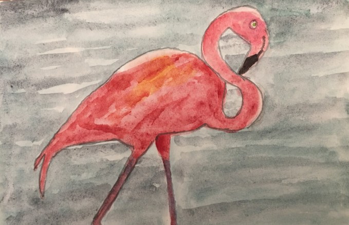 Carolyn Rondthaler. Flamingo. Watercolor.