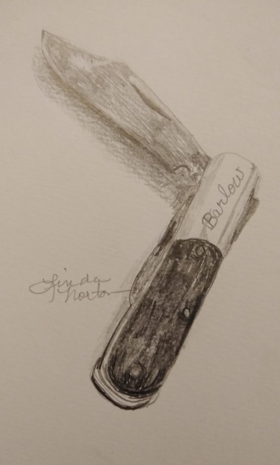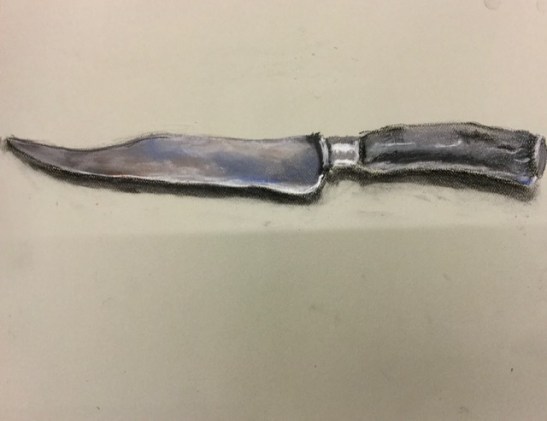 “Knives Out” was the theme of the August challenge of the Capitol Hill Art League. Each month this spring and summer the league has invited its members to submit art related to a set topic. July was “Chairs,” June was “Shoes”—you get the idea.
