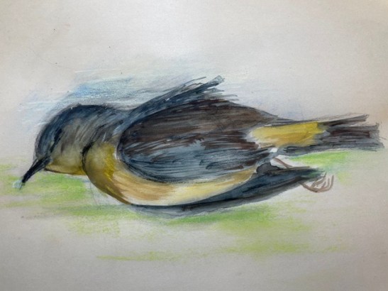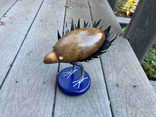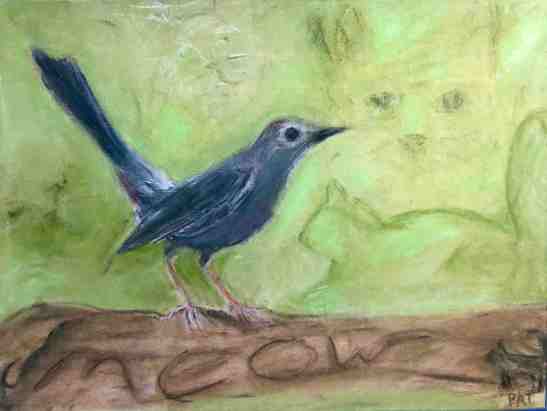 Anne Shields: Mallard. Pastel.Karen Van Allen: Homage to Brancusi. Pastel.Karen Van Allen: Dear Heron. Pastel on paper. Tara Hamilton: Hairy Woodpecker. iPad art.Vince Iannacchione: Cave Hill Dove v1. Graphite. [Cave Hill Cemetery is a historic cemetery in Louisville, Kentucky.]Tamora Ilasat: Warbler 1. Watercolor and pastel on vellum.Tamora Ilasat: Warbler 2. Watercolor and pastel on paper,Linda Norton: Himalayan Monal. Watercolor.Nancy Arbuthnot: Raven Cawing. Watercolor.Tom Eichenberger: Clapper Rail. Antique spoon, wire, soda cans, paint.Pat Evans: Catbird. PastelMarian Wiseman: White-Capped Lapwing 1 (South Africa). Watercolor.Marian Wiseman: White-Capped Lapwing 2 (South Africa). Watercolor.