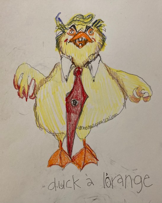 Lynne Malonnee Schlimm: Duck a L’Orange. Colored pencil and ink.