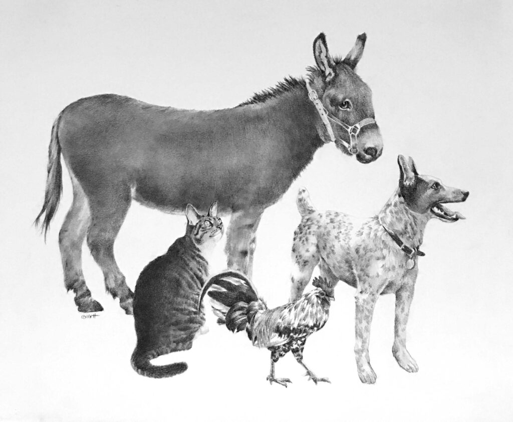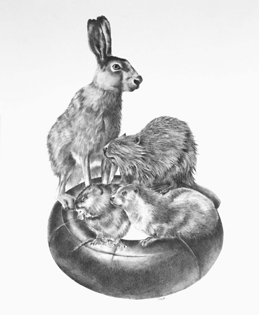 Ellen Cornett: All Animals Are Created Equal. Carbon pencil.
