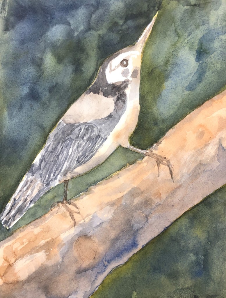Carolyn Rondthaler: White-Breasted Nuthatch. Watercolor.