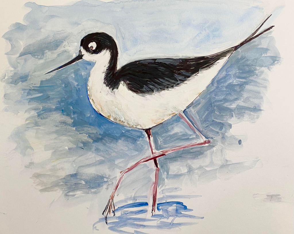 Jim Eichenberger: Black-Necked Stilt. Watercolor and tempura.