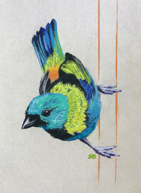 Susan Burdick: Rainbow on the Wing. Pastel pencil on sanded paper.