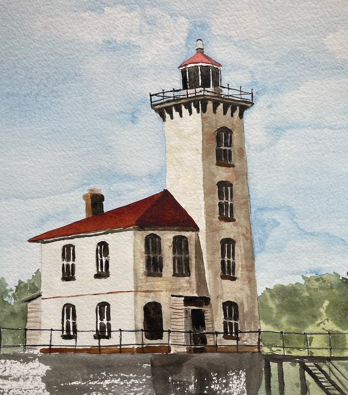 Marian Wiseman: Saginaw River Lighthouse. Watercolor.
