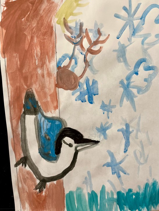 I like it that two artists submitted emperor penguins—in one the penguin is brooding an egg, and in the other one an egg has obviously been hatched, and the adult penguin is with the baby. Awww.
