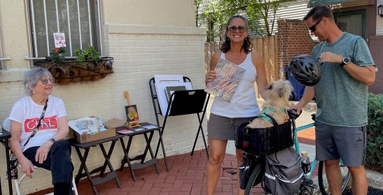 Carolyn Rondthaler shared these comments about her experience: “I had a great time doing it, and there was fairly steady traffic. Because I am on a one-way street that is one block long, there was no ‘random’ traffic. People who came had checked it out and were there on purpose, so I did make a lot of sales on both days, mostly cards. I had a LOT of interesting conversations—about art and about the neighborhood.”