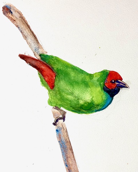 Greetings, all. This month the theme is red and green birds, including birds with red or green on them.