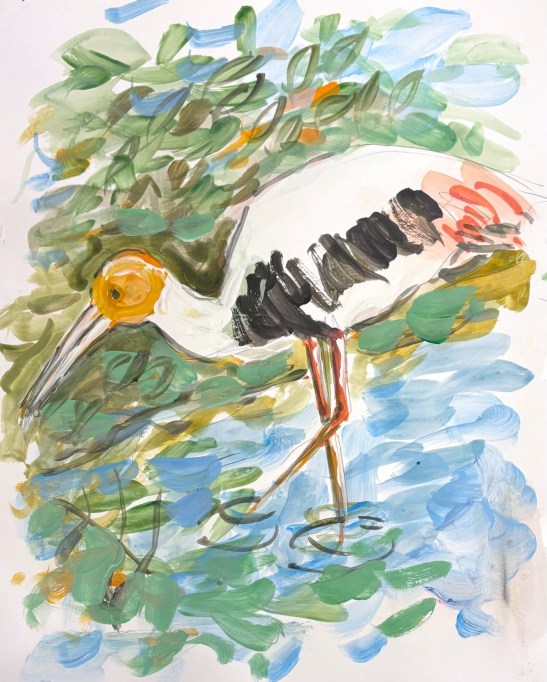 Jim Eichenberger: Painted Stork. Tempera and watercolor.