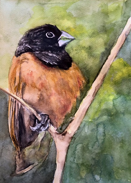 The black-headed munia is closely related to the tricolored munia, but is now widely recognized as a separate species. It is a native of southeast Asia but was introduced to the Hawaiian Islands and is now a resident bird there. It’s about 4½ inches long.