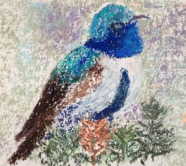 Eileen Leahy: Blue-Throated Hillstar, Equador. Pastel. This bird is a new species just identified October 1, 2018.