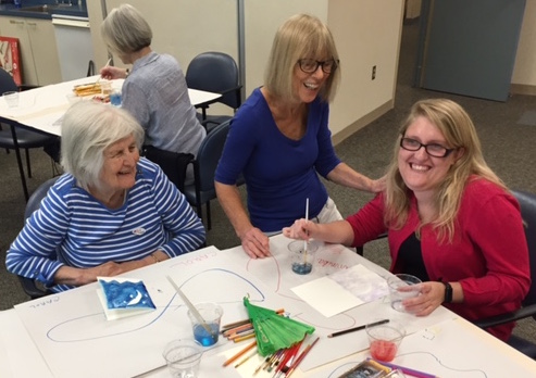 Artist Valerie Watson (center) enjoys a moment participants