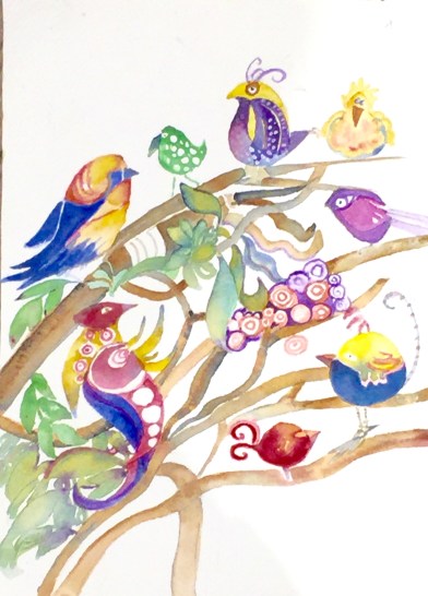 Lynne Mallonee Schlimm: Doodle birds. Watercolor.